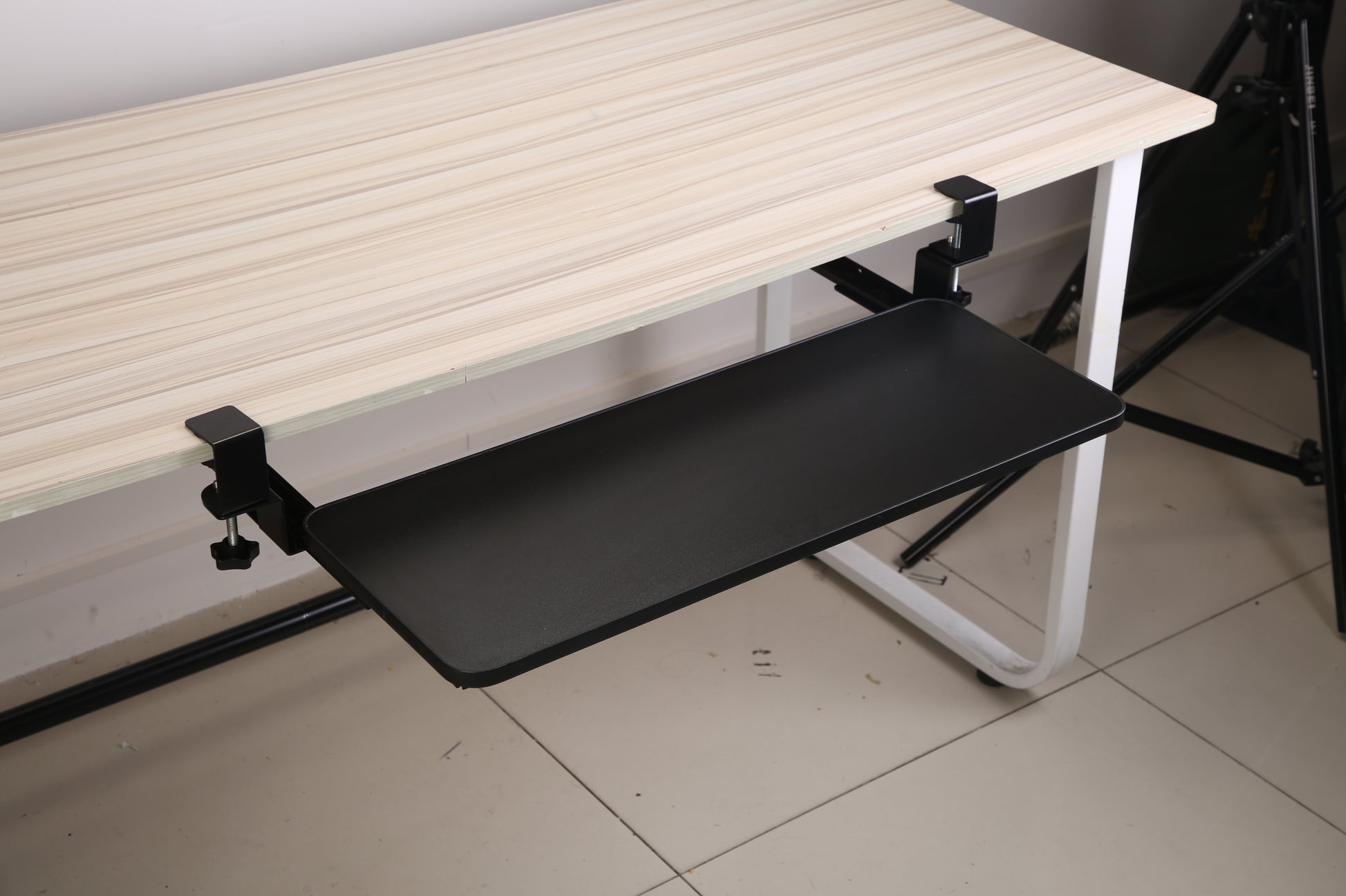 1Pc 25.59x9.64x0.51in Keyboard Mouse Tray Under Desk Retractable Slide Out Drawer Height Adjustable With C Clamp 55LBS Load